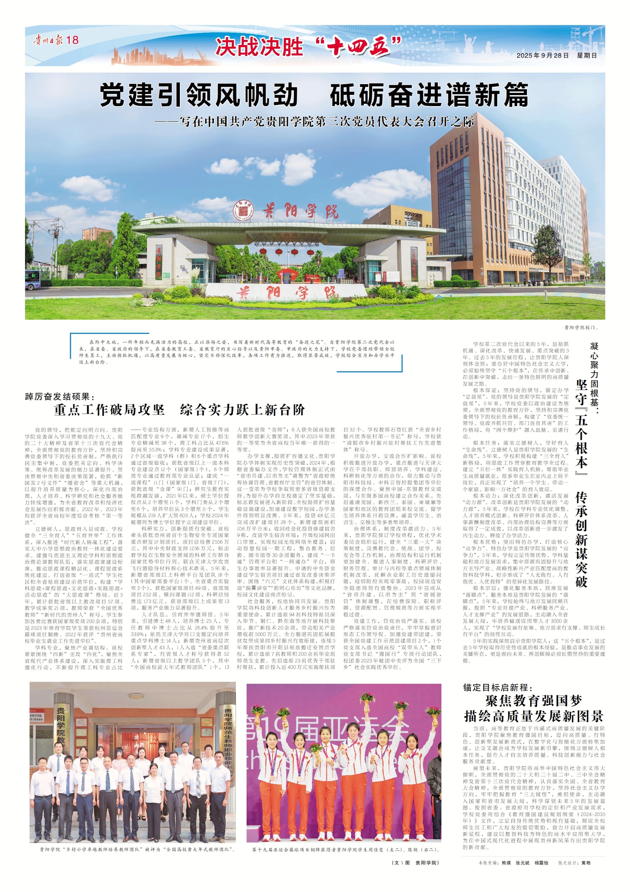 在黔中大地,一所年轻而充满活力的高校,正以昂扬之姿,书写着新时代高等教育的“奋进之笔”。贵阳学院第二次党代会以来,在省委、省政府的正确领导和省委教育工委、省教育厅的关心指导以及贵阳市委、市政府的大力支持下,学校党委团结带领全校师生员工,主动抢抓机遇,以高质量发展为核心,坚定不移深化改革,各项工作有力推进,取得显著成效,学校综合实力和办学水平迈上新台阶。