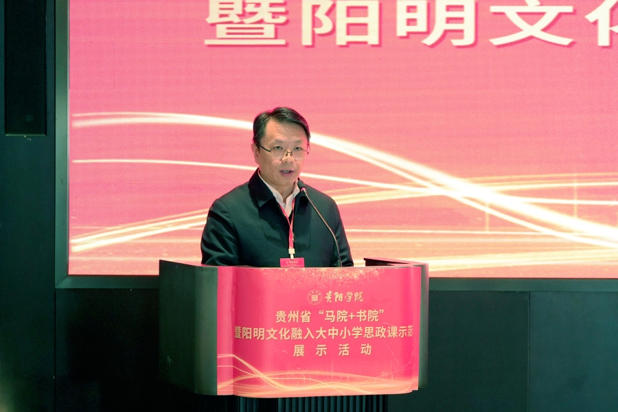 樊铁钢在致辞中说,贵阳学院立足“突出实用、服务本地”办学理念,构建以阳明文化为核心的“六元文化”体系,通过“阳明讲坛”“行走的思政课堂”等载体,形成“理论铸魂、文化润心、实践育人”立体化模式,为全省“马院+书院”建设提供“贵阳学院样本”。