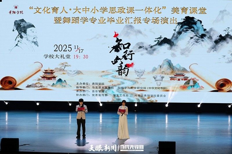 11月17日晚,贵阳学院“文化育人·大中小学思政课一体化”美育课堂暨舞蹈学专业毕业汇报演出在学校大礼堂精彩上演。这是一场将地域文化与思政教育深度融合的艺术实践,也是贵阳学院探索“思政铸魂、文化赋能、专业提质”三维目标的创新成果。