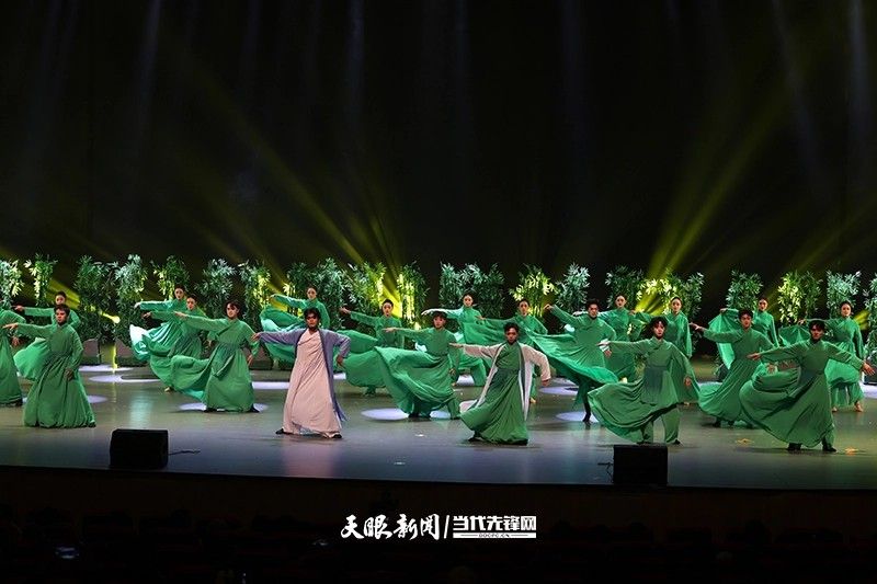 现代与传统在舞台上碰撞交融。“数流·脉动”篇章中,以舞蹈动作与光影变幻演绎数据律动,呼应贵阳“大数据之都”定位;“墨韵·飞歌”里,圆扇轻摇的舞姿凝萃诗韵,展现校园文化的浸润成果。“薪传.启明”中以端棻先生严谨治学舞姿为引,融合教育奉献者赤诚舞步,具象传承现代教育理念,展现贵阳学院赓续百年师范文脉、践行为党育人初心使命。“赤焰·星火”篇章最动人心,鼓点激昂中,红灯点点映照征程,将贵州红色文化与长征精神传递给在场每一位观众。