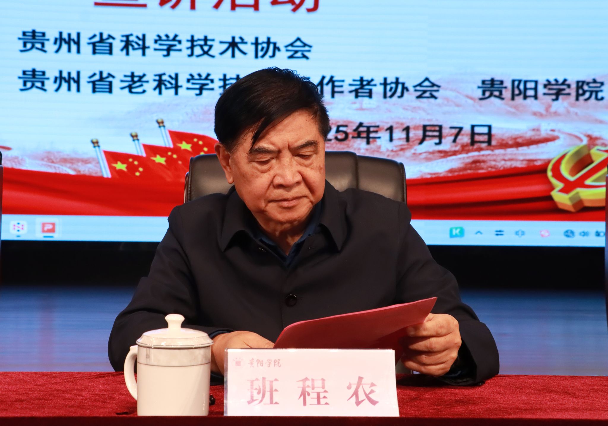 11月7日,“弘扬科学家精神,共筑科技强国梦”——“贵州科学家精神”进校园宣讲活动在贵阳学院大礼堂举行。活动由贵州省科学技术协会主办,贵州省老科学技术工作者协会与贵阳学院共同承办。贵州省政协原副主席、中国老科协副会长、贵州省老科协荣誉会长班程农,贵州省老科学技术工作者协会常务副会长兼秘书长杨献忠,副会长方荣基,贵阳学院党委书记黄营,党委副书记、校长樊铁钢,党委副书记马力出席。贵州科学家代表、省老科协相关领导以及贵阳学院师生代表约900人参加活动。马力和方荣基分别主持活动的两个环节。
