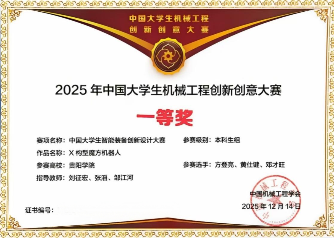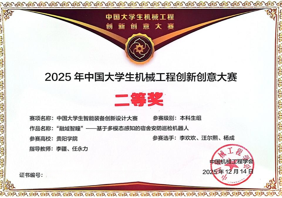 2025年12月14日,由中国机械工程学会主办的“2025年中国大学生机械工程创新创意大赛——中国大学生智能装备创新设计大赛”全国赛总决赛在天津大学举行。学校选派的两支参赛队伍表现出色,最终荣获全国总决赛最高奖一等奖1项、二等奖1项,充分彰显了学校在智能装备创新领域的强劲发展势头和人才培养成效。