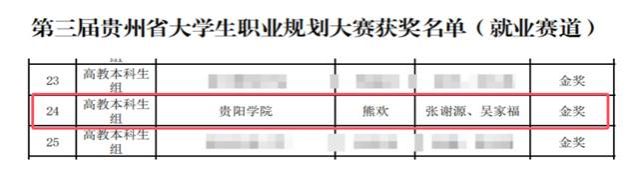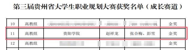 近日,由贵州省教育厅主办的第三届贵州省大学生职业规划大赛获奖名单正式公布。经过校赛、省赛层层遴选与激烈角逐,我校选派的参赛选手不负期望、奋勇争先,斩获多项省级荣誉。其中,电子信息科学与技术专业赵祥龙同学荣获高教组成长赛道金奖;汽车服务工程专业熊欢同学荣获高教本科生组就业赛道金奖;学前教育专业研究生林美琦同学荣获高校研究生组就业赛道铜奖。