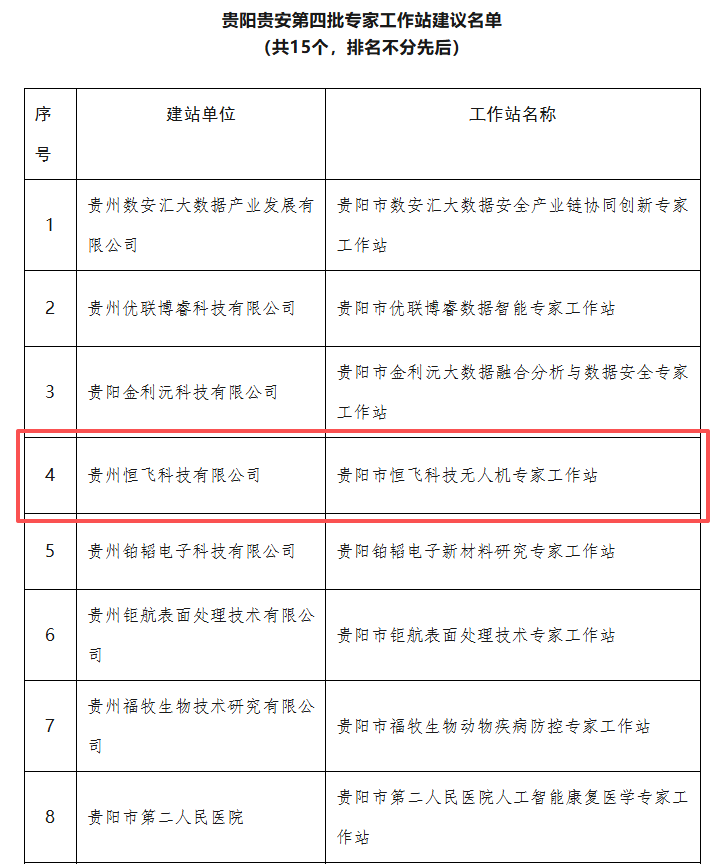 近日,贵阳市公布第四批专家工作站建议名单,学校计算机科学学院挂职副院长、天津大学国家级人才郭晓杰教授,机械工程学院刘征宏教授作为入驻专家与贵州恒飞科技有限公司共同申报的“贵阳市恒飞科技无人机专家工作站”成功入选,标志着天津大学对口帮扶我校取得又一重要成果,也彰显了学校在产学研协同创新方面的持续深化与积极探索。
